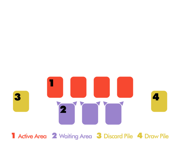 Placing a Monster - The starting player will place a monster card from their hand into one of the spots in the waiting area. Place a die onto the middle of the monster card and set it to the same number as the monster's Star Value (in the bottom left of the card). This value indicates how many turns must pass until the monster can enter the active area. At the beginning of your next turn reduce each dice count on your waiting monsters by 1. When a die reaches 0, place the monster in an adjacent available spot in the active area. (If there are no available spots, the monster must stay in the waiting area until a spot is open). If you can't place a monster on your waiting area, then skip this step.